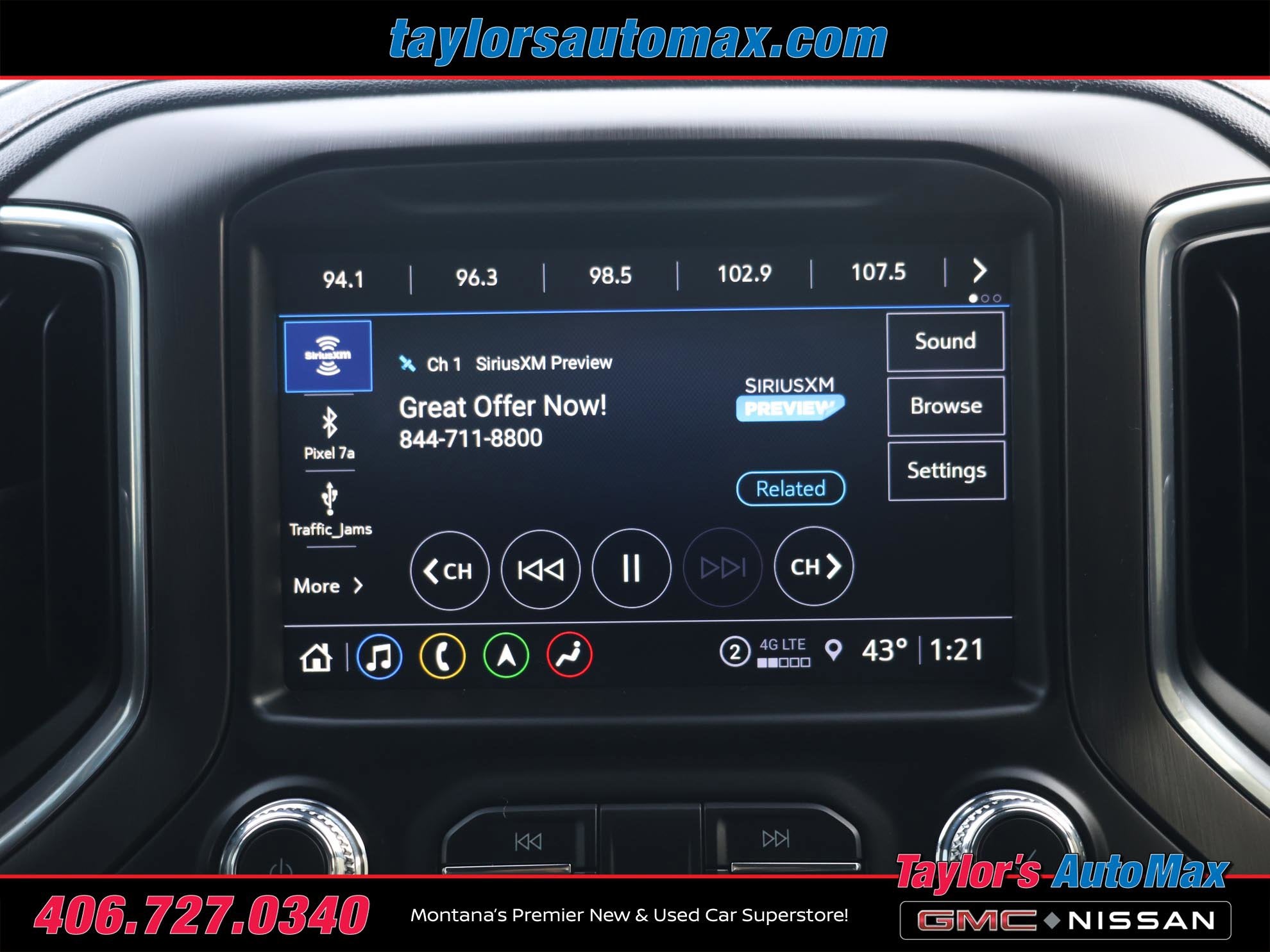 - Audio system, Premium GMC Infotainment System with 8" diagonal color touch-screen, includes multi-touch display, AM/FM stereo Bluetooth® streaming audio for music and most phones; featuring wireless Android Auto and Apple CarPlay capability for compatible phones, advanced voice recognition, in-vehicle apps, personalized profiles for infotainment and vehicle settings (Note: (PZ8) Hitch Guidance with hitch view is included with trim. Includes SiriusXM with 360L.)