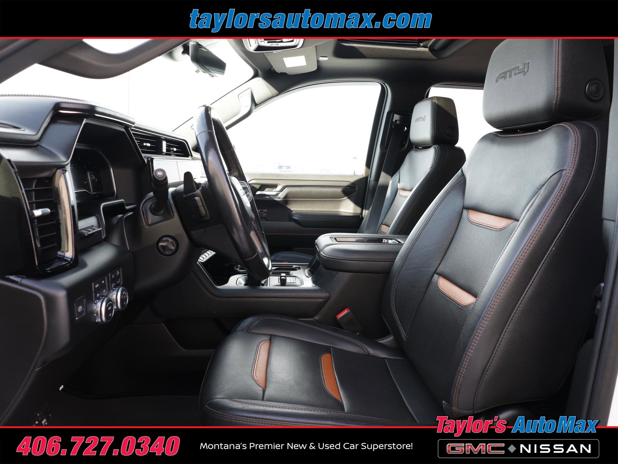 LEATHER INTERIOR, Sierra 1500 AT4, 4D Crew Cab, EcoTec3 6.2L V8, 10-Speed Automatic, 4WD, Summit White, Jet Black w/Kalahari Accents w/Perforated Front Leather Seat Trim, 120-Volt Bed Mounted Power Outlet, 120-Volt Instrument Panel Power Outlet, 2 Charge/Data USB Ports Inside Center Console, 2 Type-C Charge-Only Rear USB Ports, 2 USB Ports, 220 Amp Alternator, Adaptive Cruise Control, AT4 Preferred Package, AT4 Premium Package, Auto-Locking Rear Differential, Bed View Camera, Black Chrome Header & Grille Insert Bars, Color-Keyed Carpeting Floor Covering, Compass, Deep-Tinted Glass, Electric Rear-Window Defogger, Electrical Steering Column Lock, Floor-Mounted Center Console, Front Prem Floor Liners w/Removable Carpet Insert, Front Rainsensing Wipers, GMC Connected Access Capable, HD Rear Vision Camera, HD Surround Vision, Heated 2nd Row Outboard Seats, Heated Driver & Front Outboard Passenger Seating, Heated Steering Wheel, Heavy-Duty Air Filter, Hill Descent Control, Hitch Guidance, Hitch Guidance w/Hitch View, In-Vehicle Trailering App, Integrated Trailer Brake Controller, Keyless Open & Start, LED Cargo Area Lighting, Multicolor 15 Diagonal Head-Up Display, Navigation System, Off-Road High Clearance Step (LPO), OnStar & GMC Connected Services Capable, Perimeter Lighting, Power Door Locks, Power Front Passenger Windows w/Express Up/Down, Power Front Windows w/Driver Express Up/Down, Power Rake & Telescoping Steering Column, Power Rear Windows w/Express Down, Power Sliding Rear Window w/Rear Defogger, Power Sunroof, Preferred Equipment Group 4SB, Premium Bose 7-Speaker Sound System, Push Button Start, Rear Camera Mirror, Rear Cross Traffic Braking, Rear Pedestrian Detection, Rear Prem Floor Liners w/Removable Carpet Insert, Rear Wheelhouse Liners, Red Recovery Hooks, Remote Vehicle Starter System, Sierra Safety Plus Package, SiriusXM w/360L, Spray-On Pickup Bed Liner w/AT4 Logo, Steering Wheel Audio Controls, Technology Package, Theft Deterrent System (Unauthorized Entry), Trailer Camera Provisions, Trailer Side Blind Zone Alert, Trailering Package, Ultrasonic Front & Rear Park Assist, Universal Home Remote, Ventilated Driver & Front Passenger Seats, Wi-Fi Hotspot Capable, Wireless Charging, Wireless Phone Projection. 2022 GMC Sierra 1500 AT4 Summit White 4WD 10-Speed Automatic EcoTec3 6.2L V8