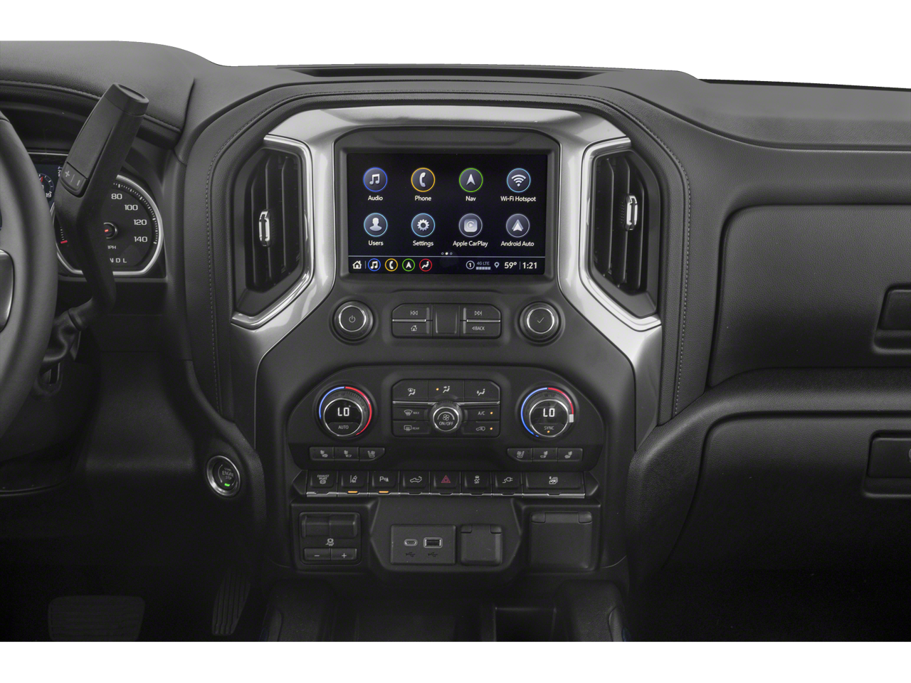 - Audio system, Chevrolet Infotainment 3 Plus system, 8" diagonal HD color touchscreen, AM/FM stereo Bluetooth® audio streaming for 2 active devices, wireless Apple CarPlay and Android Auto capable, voice recognition, in-vehicle apps, cloud connected personalization for select infotainment and vehicle settings. Subscription required for enhanced and connected services after trial period. (Includes (PZ8) Hitch Guidance with Hitch View.)