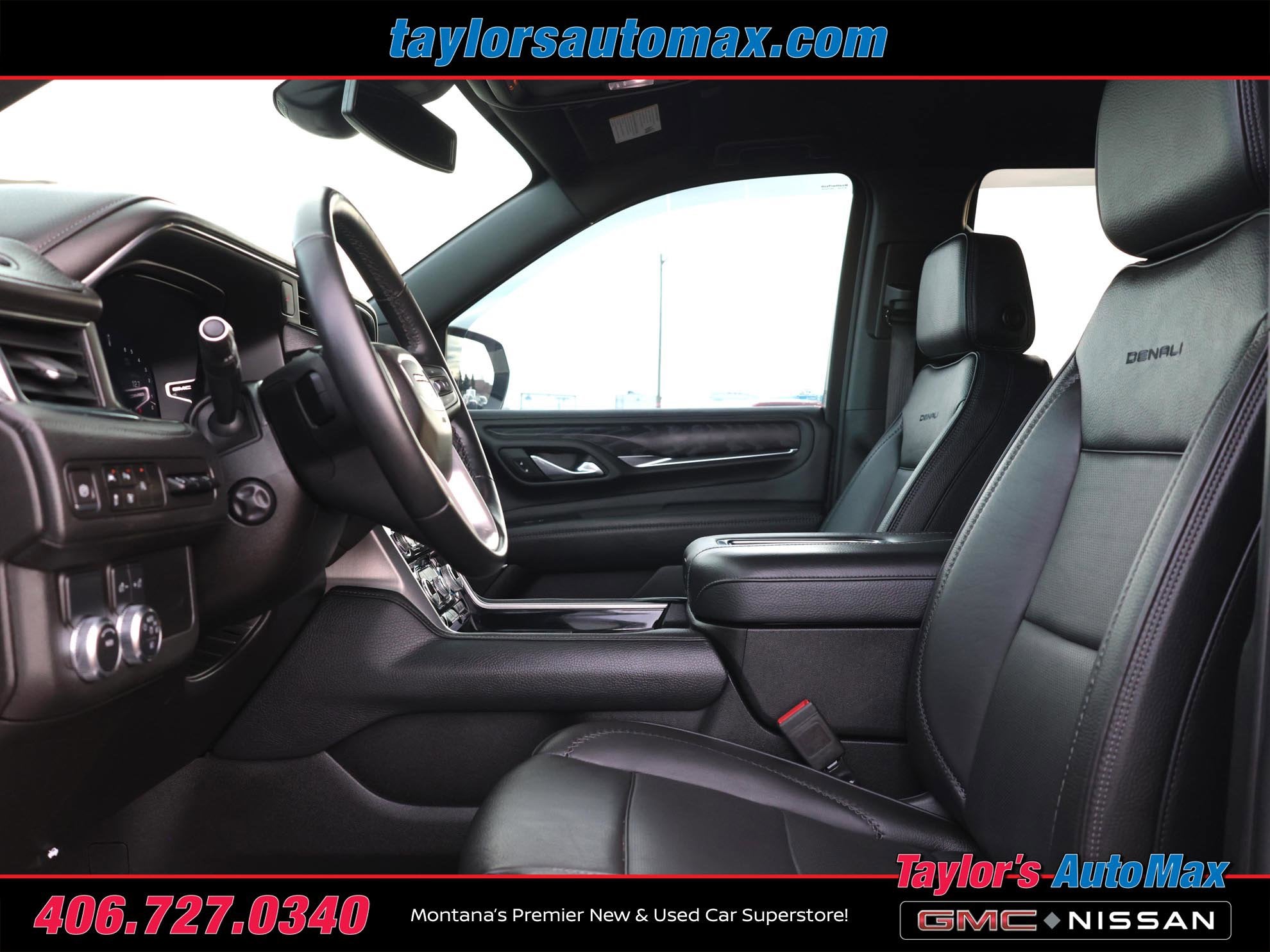 LOCAL TRADE IN, LEATHER INTERIOR, Yukon Denali, 4D Sport Utility, EcoTec3 6.2L V8, 10-Speed Automatic with Overdrive, RWD, Sterling Metallic, Jet Black Leather, 15 Diagonal Multi-Color Head-Up Display, 2 Presets For Outside Rearview Mirrors, 3 Years of GMC Connected Services, 3rd Row 60/40 Power-Folding Split-Bench Seat, Adaptive Cruise Control, Bose 14-Speaker Surround w/CenterPoint, Bright Front & Rear Door Sill Plates, Chrome Door Handles w/Body-Color Strip, Dual Exhaust System, Enhanced Automatic Emergency Braking, Floor Console, Front & Rear Park Assist, Galvano Bodyside Moldings, Hands-Free Power Programmable Rear Liftgate, HD Surround Vision, Heads-Up Display, Heated & Ventilated Driver & Front Passenger Seats, Heated 2nd Row Outboard Position Seats, Heated Driver & Front Passenger Seats, Heated Steering Wheel, Inside Rear-View Auto-Dimming Mirror, Memory seat, Navigation System, Outside Heated Power-Adjustable Mirrors, Power driver seat, Power Liftgate, Power Release 2nd Row Bucket Seats, Power steering, Power Tilt & Telescopic Steering Column, Power windows, Preferred Equipment Group 5SA, Rear Pedestrian Alert, Remote keyless entry, Safety Alert Seat, Steering wheel memory, Steering wheel mounted audio controls, Universal Home Remote, Wireless Charging. 2023 GMC Yukon Denali Sterling Metallic RWD 10-Speed Automatic with Overdrive EcoTec3 6.2L V8