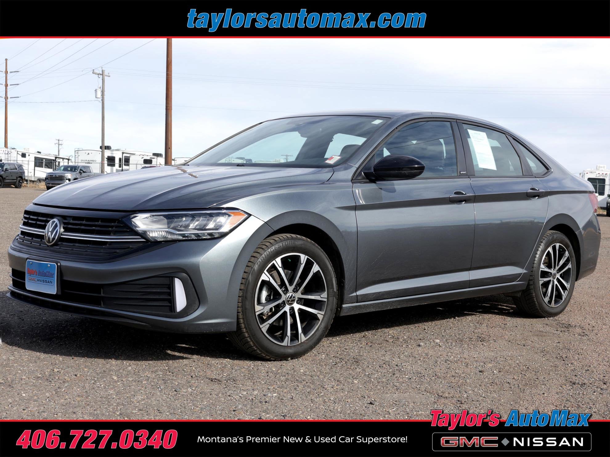 LOCAL TRADE IN ONE OWNER, Jetta 1.5T Sport, 4D Sedan, 1.5L I-4 DI DOHC Turbocharged, 8-Speed Automatic with Tiptronic, FWD, Platinum Gray Metallic, Titan Black w/Cloth Seat Trim, 4 Speakers, 4-Wheel Disc Brakes, Air Conditioning, Alloy wheels, AM/FM radio, Bumpers: body-color, Cloth Seat Trim, Delay-off headlights, Front Bucket Seats, Passenger door bin, Power steering, Power windows, Speed control, Steering wheel mounted audio controls, Traction control. 2023 Volkswagen Jetta 1.5T Sport Platinum Gray Metallic FWD 8-Speed Automatic with Tiptronic 1.5L I-4 DI DOHC Turbocharged
