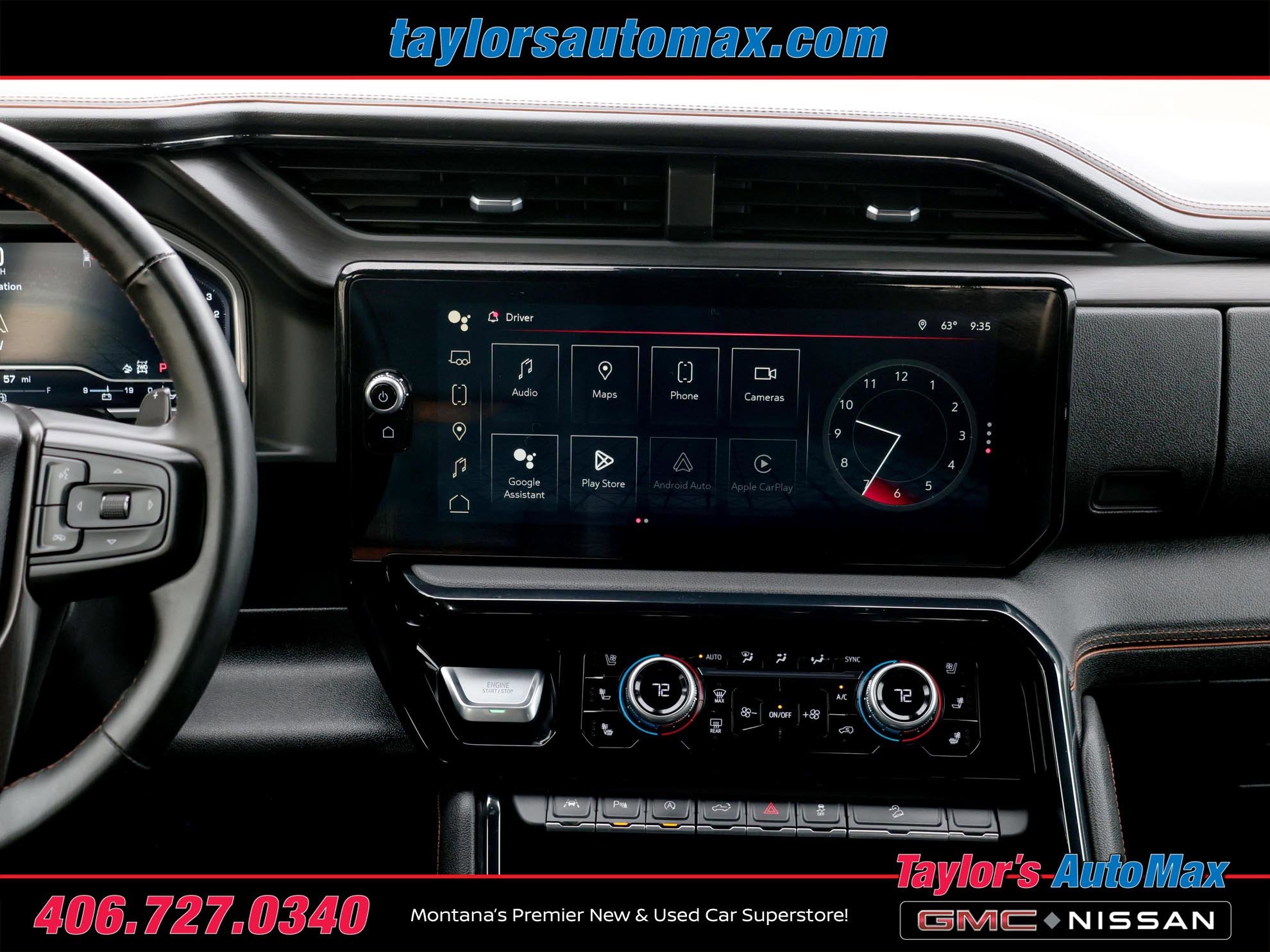 - Audio System, 13.4" diagonal Premium GMC Infotainment System with Google built in apps such as navigation and voice assistance, includes color touch-screen, multi-touch display, AM/FM stereo Bluetooth® streaming audio for music and most phones; featuring wireless Android Auto and Apple CarPlay capability for compatible phones