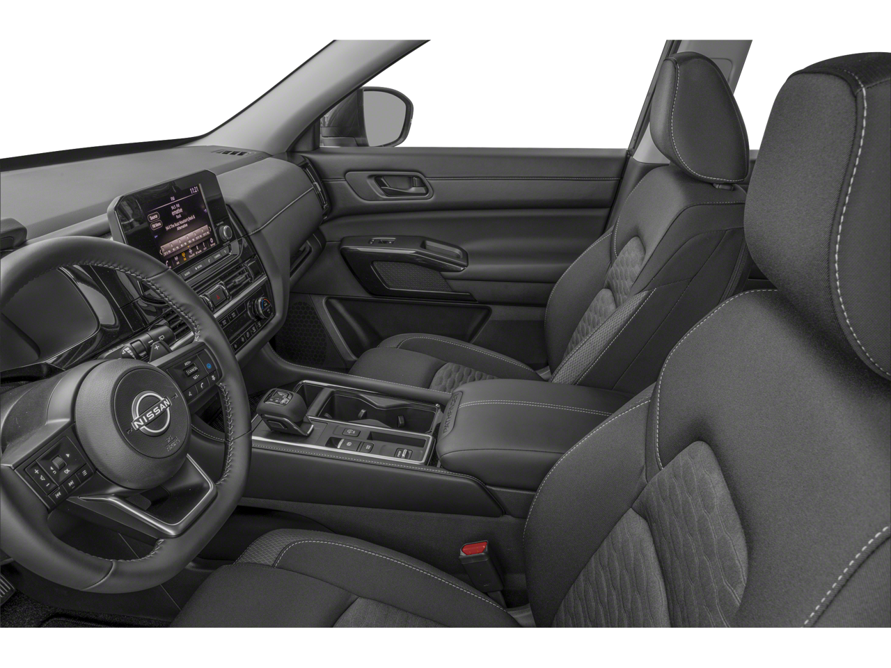 Pathfinder SV, 4D Sport Utility, 3.5L V6 DOHC, 9-Speed Automatic, 4WD, Super Black, Charcoal w/Cloth Seating Surfaces, 4-Wheel Disc Brakes, 6 Speakers, Air Conditioning, AM/FM radio: SiriusXM, Automatic temperature control, Front Bucket Seats, Front dual zone A/C, Heated Front Bucket Seats, Power driver seat, Power steering, Power windows, Rear air conditioning, Rear window defroster, Remote keyless entry, Speed control, Steering wheel mounted audio controls. 2024 Nissan Pathfinder SV Super Black 4WD 9-Speed Automatic 3.5L V6 DOHC
